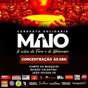 Uma grande carreata em defesa dos direitos e contra o genocídio do povo brasileiro será realizada em João Pessoa neste sábado, 1º de maio, para marcar o Dia dos Trabalhadores e Trabalhadoras. A atividade está sendo organizada por centrais sindicais, frentes populares, partidos políticos e movimentos sociais dentro da Jornada de Luta dos Trabalhadores, que contará com eventos e atos políticos em todo o país.