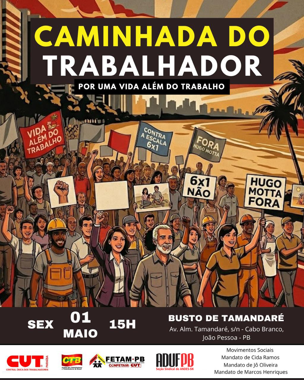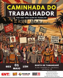 O Dia do Trabalhador e da Trabalhadora, comemorado na próxima sexta-feira, 1º de maio, será marcado, este ano, por uma onda de manifestações em todo o país pelo fim da escala 6×1. Em João Pessoa, o ato público ocorrerá no Busto de Tamandaré, entre as praias de Tambaú e Cabo Branco, com concentração a partir das 15h.