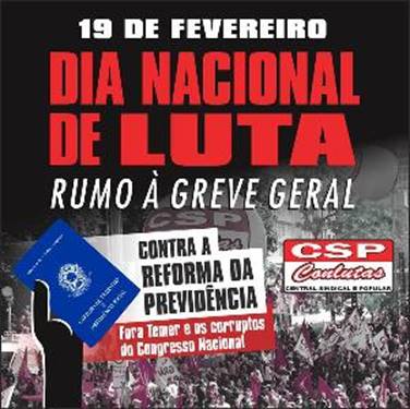 Após o governo federal anunciar, por meio da imprensa, que pretende votar a Proposta de Emenda à Constituição (PEC) 287/16, da Reforma da Previdência, em 28 de fevereiro, os Servidores Públicos Federais (SPFs) mantiveram a realização do Dia Nacional de Greves, Paralisações e Mobilizações em 19 de fevereiro e decidiram, também, por convocar as categorias…