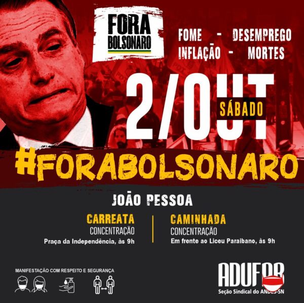 As manifestações contra o governo Bolsonaro voltam a tomar as ruas das principais cidades do país neste sábado, dia 2 de outubro. Em João Pessoa, o protesto ocorrerá no Centro, com carreata e caminhada. Os manifestantes que seguirão em caminhada vão se concentrar em frente ao Liceu Paraibano, a partir das 9h. Já os que…