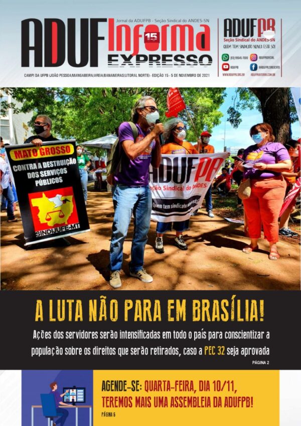 A décima quinta edição do jornal ADUFInforma Impresso, que já está circulando nas mídias da ADUFPB, destaca a jornada de luta contra votação da PEC 32, em Brasília, e em as mobilizações em vários estados do país. Servidoras e servidores entram em sua oitava semana de protestos da Jornada de Luta contra a Proposta de…