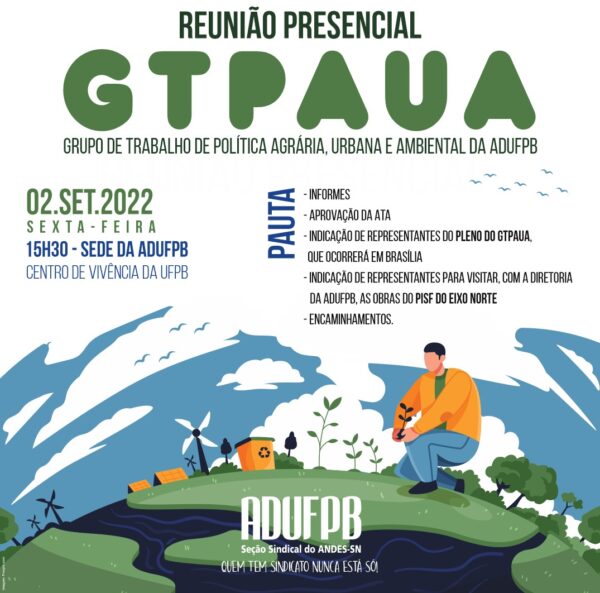 O Grupo de Trabalho de Política Agrária, Urbana e Ambiental (GTPAUA) da ADUFPB realiza na próxima sexta-feira (2/9) a primeira reunião presencial do biênio 2022/2024. A atividade será na sede do sindicato, localizada no Centro de Vivência do campus I, a partir das 15h30. Em pauta estão os seguintes assuntos: Informes, aprovação da ata, indicação…