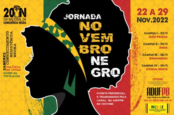 Jornada Novembro Negro, promovida pela ADUFPB e o Neabi, começa na próxima terça-feira (22)