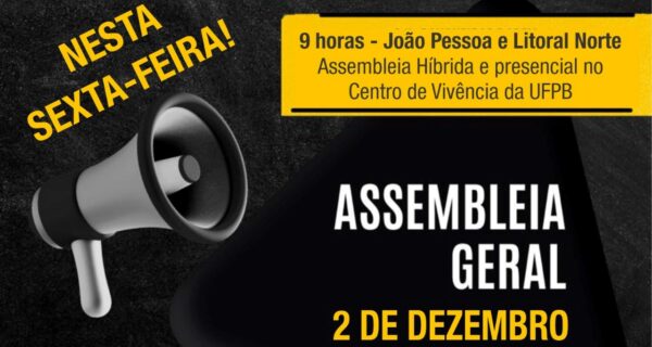 Na manhã desta sexta-feira (2), haverá assembleia docente dos campi de João Pessoa e Litoral Norte. A atividade, que será realizada em formato híbrido, está marcada para começar às 9h. Nos campi de Areia e Bananeiras, a assembleia aconteceu na manhã desta quinta-feira (1º). Em pauta, temas como a desfiliação da CSP-Conlutas, a eleição dos…