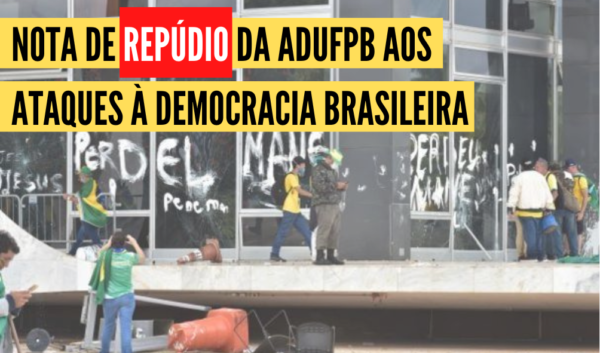 A Diretoria da ADUFPB repudia veementemente os ataques à democracia brasileira protagonizados nos episódios de invasão e destruição dos prédios do Palácio do Planalto, Congresso Nacional e Superior Tribunal Federal no dia 8 de janeiro de 2023. O momento exige responsabilidade histórica de todas/os aquelas/es que têm compromisso com o Estado Brasileiro, com os valores…