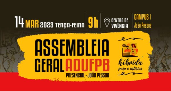 ADUFPB realiza assembleia geral nesta terça-feira (14), no Centro de Vivência, a partir das 9h