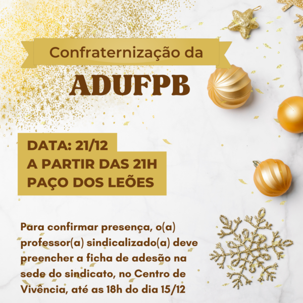 Já em clima de fim de ano, a ADUFPB realiza no próximo dia 21 a tradicional festa de confraternização do sindicato. Como acontece todos os anos, o evento será no Paço dos Leões, em João Pessoa, a partir das 21h. Petiscos, jantar e bebidas diversas estão entre as pedidas da noite, cuja principal atração musical…