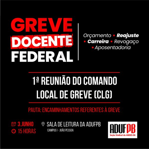 Começa na próxima quarta-feira (5/6) o prazo de inscrição das chapas que vão concorrer nas eleições para escolha da Gestão 2024/2026 da Diretoria Executiva e do Conselho de Representantes da ADUFPB. Os grupos interessados têm até as 18h da próxima sexta-feira (7) para oficializar a candidatura. Conforme o edital de convocação das eleições, publicado no…