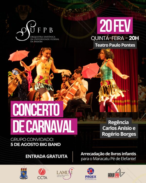 A OSUFPB volta aos palcos para a sua temporada de 2025 com grande concerto de carnaval, trazendo como convidada a 5 de Agosto Big Band. O evento ocorrerá excepcionalmente nesta quinta-feira, 20 de fevereiro, no Teatro Paulo Pontes, às 20h00. Ou seja, quebrando a tradição da sexta-feira na Sala Radegundis Feitosa por conta da grande…