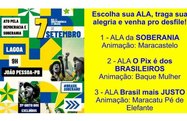 O Centro de João Pessoa será ocupado neste domingo (7) pela 31ª edição do Grito dos Excluídos e das Excluídas. O evento, que acontece no dia 7 de setembro como uma contraposição do “grito de Independência”, conta, este ano, com a participação do Movimento pela Soberania e Democracia para defender a soberania do país e…