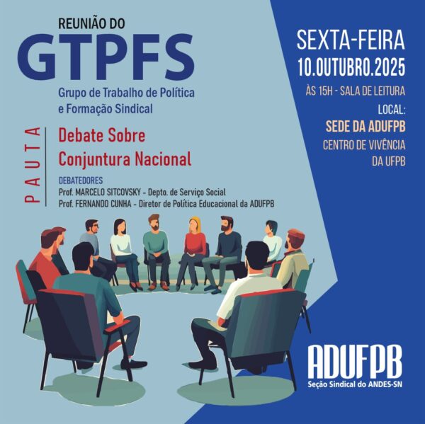 O Grupo de Trabalho de Política e Formação Sindical (GTPFS) da ADUFPB promove na próxima sexta-feira (10) um debate sobre a conjuntura política nacional. A atividade será realizada na Sala de Leitura da sede do sindicato, localizada no Centro de Vivência do campus I, a partir das 15h. À frente dos debates estarão os professores…