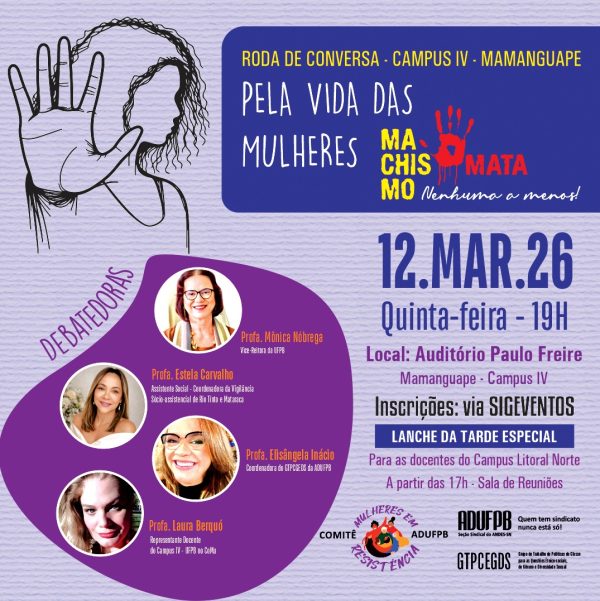ADUFPB realiza “Roda de Conversa: Mulheres em Resistência” nesta quinta-feira (12), em Mamanguape
