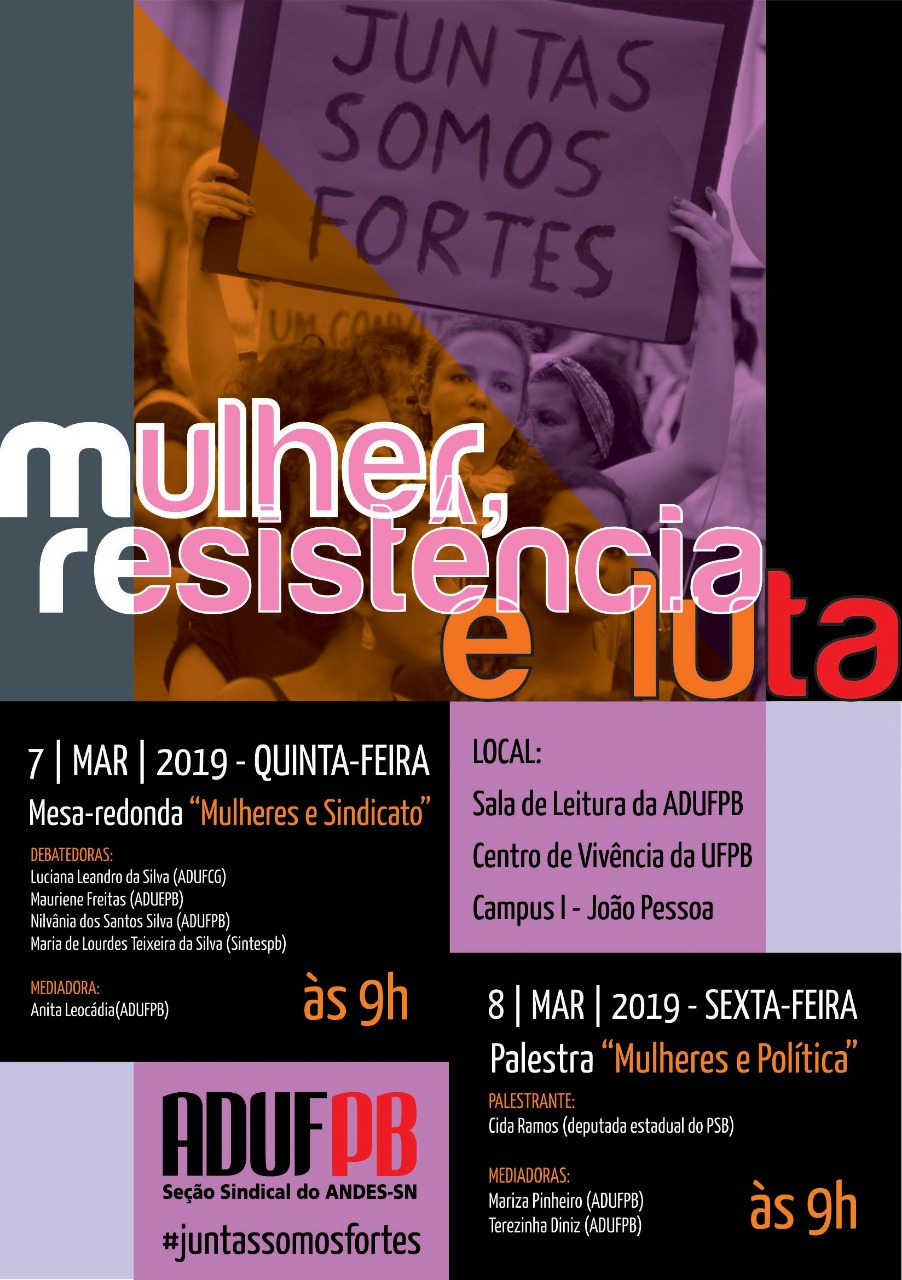 A ADUFPB convoca todas as professoras e professores a integrarem essa luta contra a violência e à desigualdade de gênero e pelo combate ao feminicídio. O movimento também levanta as bandeiras pela democracia e contra a reforma da Previdência.