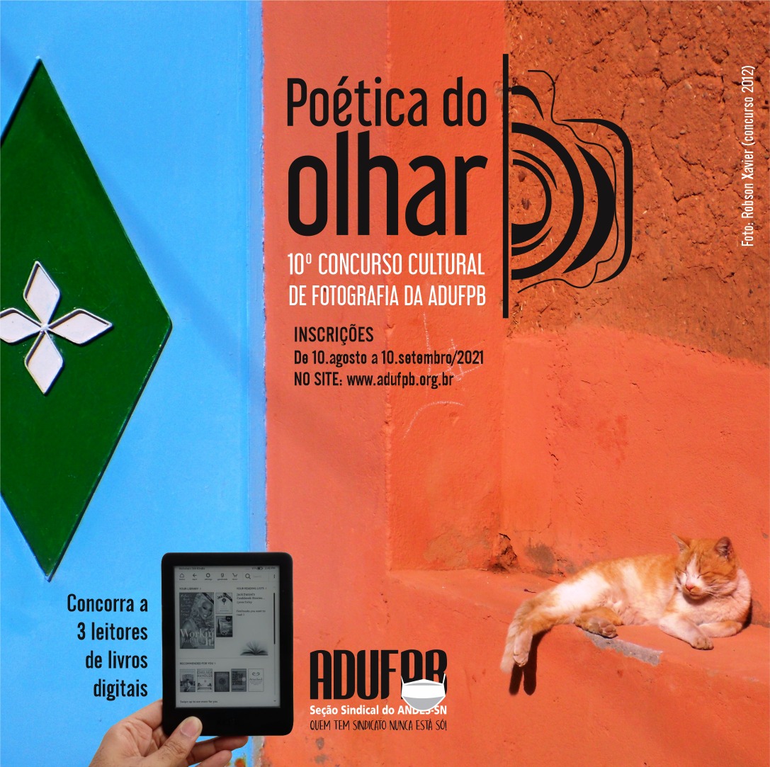 Estão abertas as inscrições para o 10º Concurso de Fotografia da ADUFPB, promovido anualmente com o objetivo de estimular e divulgar o talento e a criatividade fotográfica dos(as) docentes sindicalizados(as). O envio das imagens pode ser feito até o dia 10 de setembro, exclusivamente pelo site da entidade (www.adufpb.org.br).