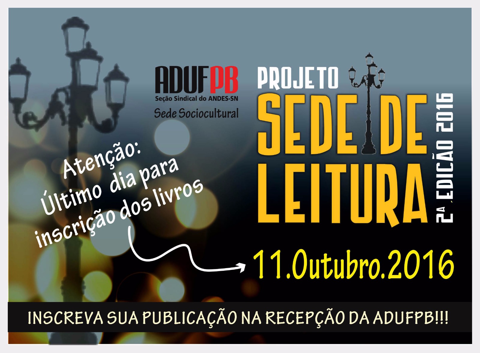 Este ano, a segunda edição do Sede de Leitura está programada para o dia 14 de outubro (sexta-feira), como parte das atividades culturais em comemoração ao Dia do Professor. Na mesma noite, será realizado um sarau com leitura de poemas, performances artísticas, música e será divulgada a premiação das três melhores imagens inscritas para o concurso cultural de fotografia da ADUFPB. O evento será animado com música ao vivo e será servido um coquetel.
