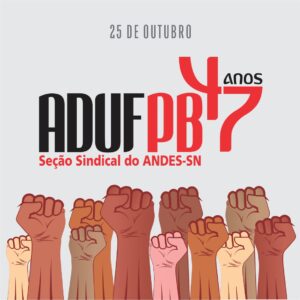 No último sábado, dia 25 de outubro, a ADUFPB celebrou 47 anos de fundação. Quase meio século de uma trajetória marcada pela defesa intransigente dos direitos trabalhistas das professoras e dos professores da Universidade Federal da Paraíba e pela luta em prol de uma educação pública, gratuita, de qualidade e socialmente referenciada.