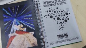 Um conjunto de luzes, formas, cores e contrastes anuncia a chegada de um ano de esperança. Essa é a proposta visual para a Agenda ADUFPB 2023, elaborada pela Assessoria de Comunicação do sindicato, com a colaboração de professoras e professores, por meio de fotografias e poemas. Os exemplares começaram a entregues aos professores sindicalizados na tarde desta quarta-feira (21). A distribuição segue durante a manhã de quinta-feira (22), depois será suspensa devido ao recesso de fim de ano do sindicato e retomada no dia 2 de janeiro. Junto com a agenda, os professores estão recebendo uma bolsa com a logomarca da ADUFPB.