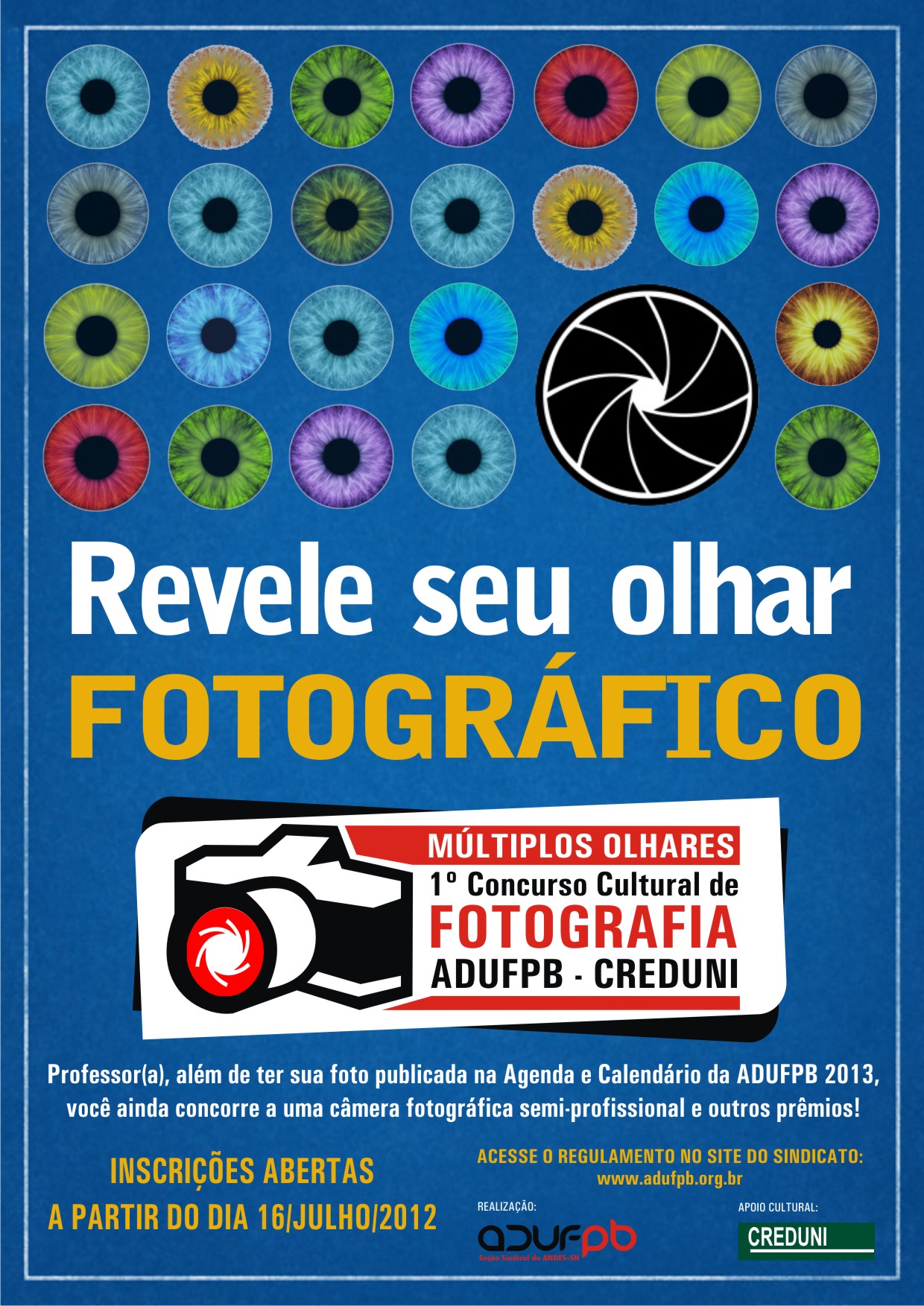Intitulado Múltiplos Olhares, o concurso pretende estimular a produção de fotografias como atividade cultural e artística e, ao mesmo tempo, valorizar a talento dos professores com a publicação das imagens na Agenda de 2013 e em um calendário, que serão distribuídos com todos os sindicalizados no final deste ano.