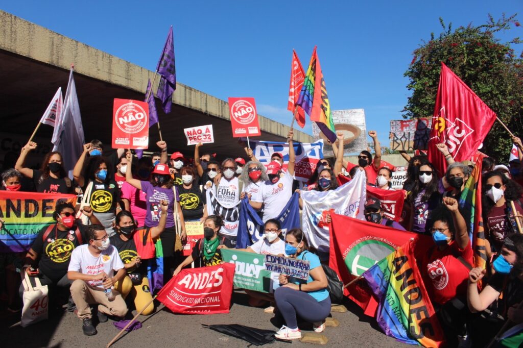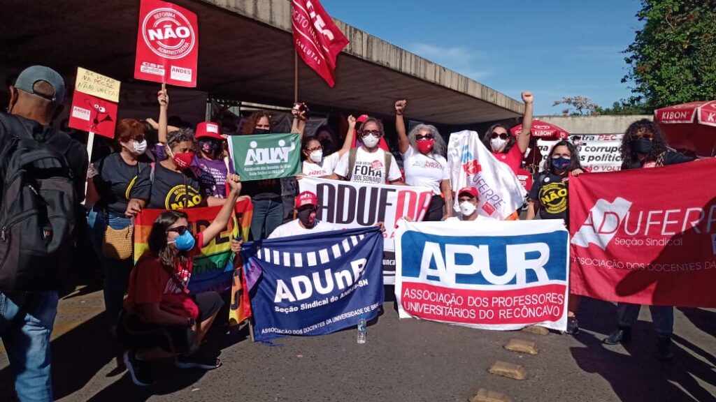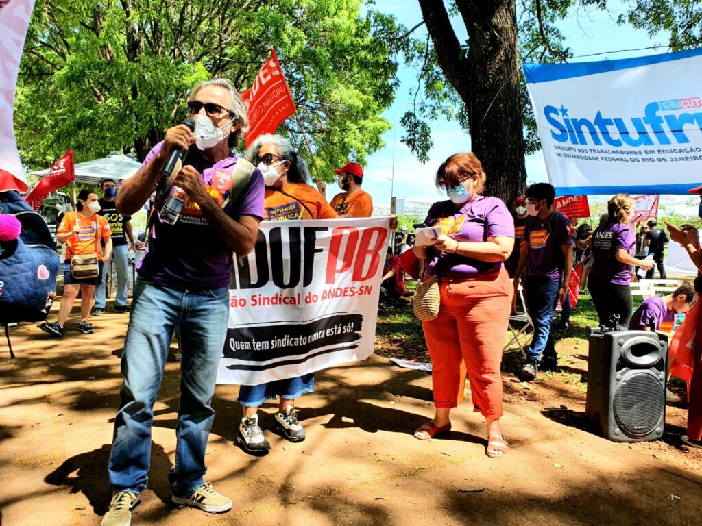 “Nós, servidores públicos, temos muito pouco a comemorar nesse Dia do Servidor [28 de outubro]. infelizmente a gente vem sofrendo ataques na Educação, com interventores nos institutos federais e nas universidades, estamos enfrentando essa contrarreforma administrativa e, em meio a uma pandemia, precisamos colocar nossas vidas em risco para estar nas ruas, protestando contra essas ameaças”, declarou o presidente da ADUFPB.