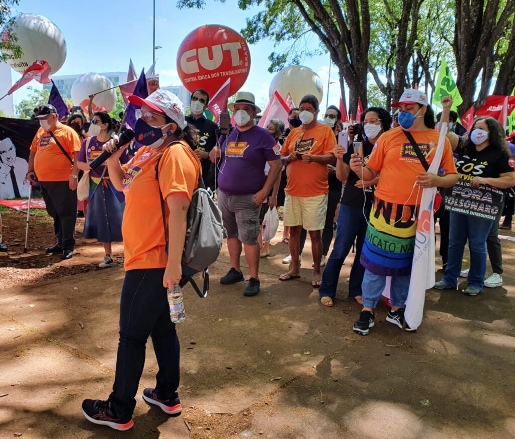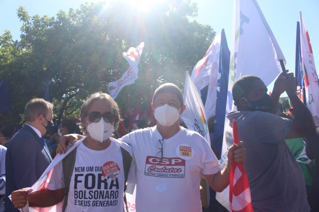 Ele vem participando dos diversos atos realizados ao longo desta semana. Na segunda e terça-feira (25 e 26), ocorreram protestos nos aeroporto de Brasília para pressionar os e as parlamentares a se posicionarem contra a reforma Administrativa, que representa o desmonte dos serviços públicos e um profundo ataque aos direitos do funcionalismo público municipal, estadual e federal.