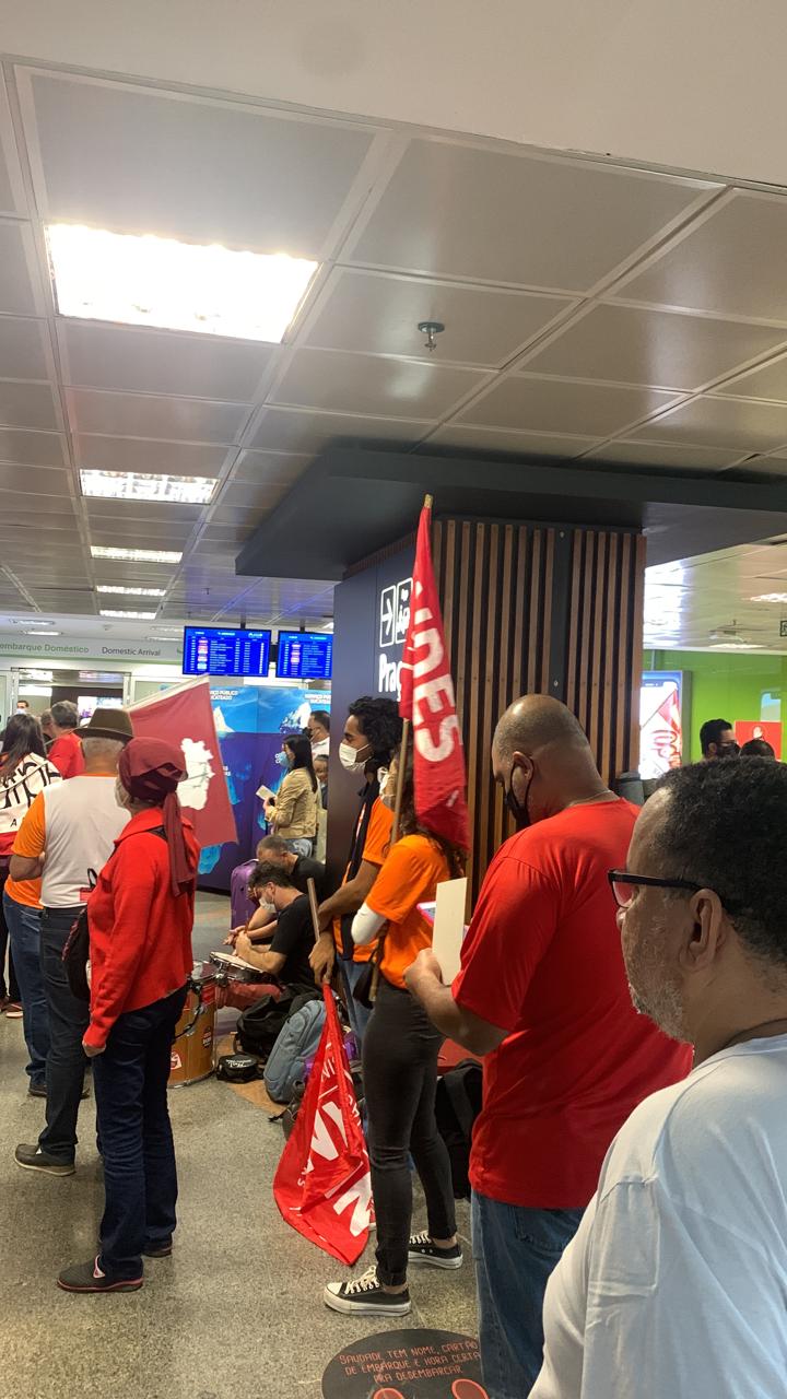 No primeiro dia da jornada de luta, manifestantes foram ao Aeroporto Juscelino Kubistchek, na capital federal, recepcionar senadores, senadoras, deputados e deputadas. Na terça-feira (5), pela manhã também houve recepção no aeroporto e, à tarde, foi realizada uma mobilização em frente ao Anexo II da Câmara.
