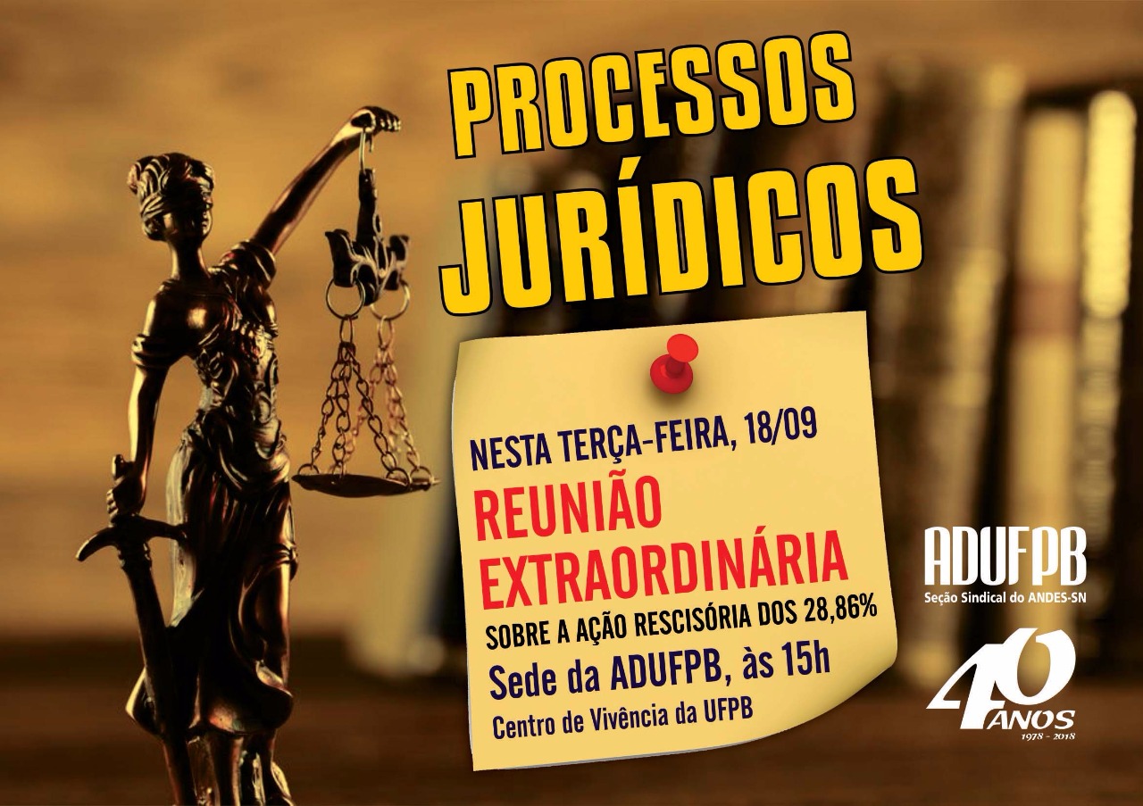 A ADUFPB realiza nesta terça-feira, 18 de setembro, uma reunião extraordinária com o setor jurídico para tratar dos novos desdobramentos da ação rescisória impetrada pela União.