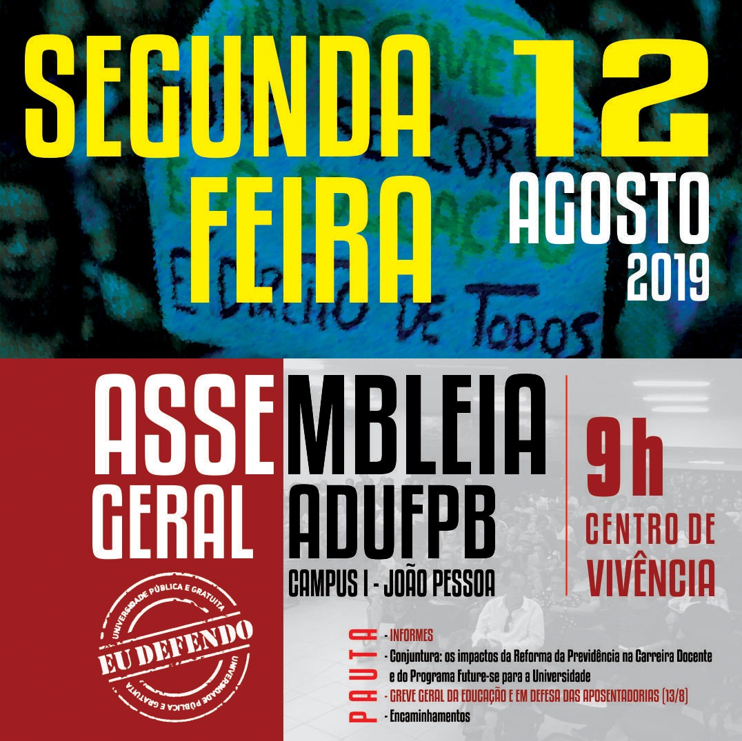 Na pauta estão debates sobre a reforma da Previdência, o programa Future-se e a adesão da categoria à Greve Geral da Educação e em Defesa das Aposentadorias, que será realizado em todo o país no dia 13 de agosto.
