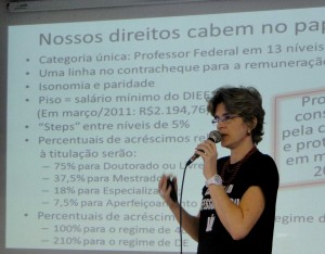 Também foi discutida na assembleia, realizada no auditório da reitoria, a sugestão de contraproposta elaborada pelo Comando Local de Greve para ser apresentada ao Andes como sugestão nas negociações com o governo. O estudo foi apresentado pela professora Cristine Hirsch.