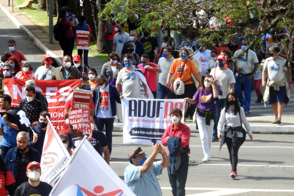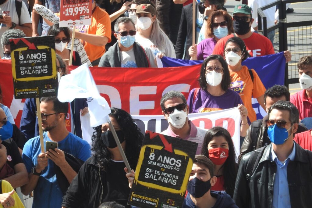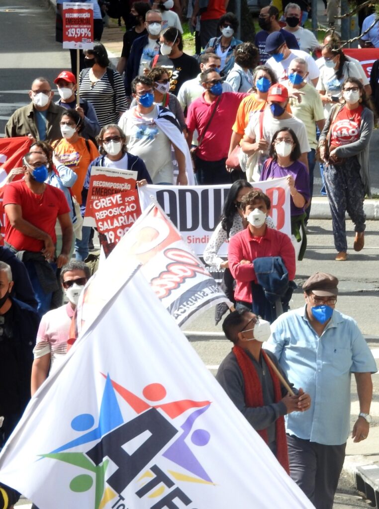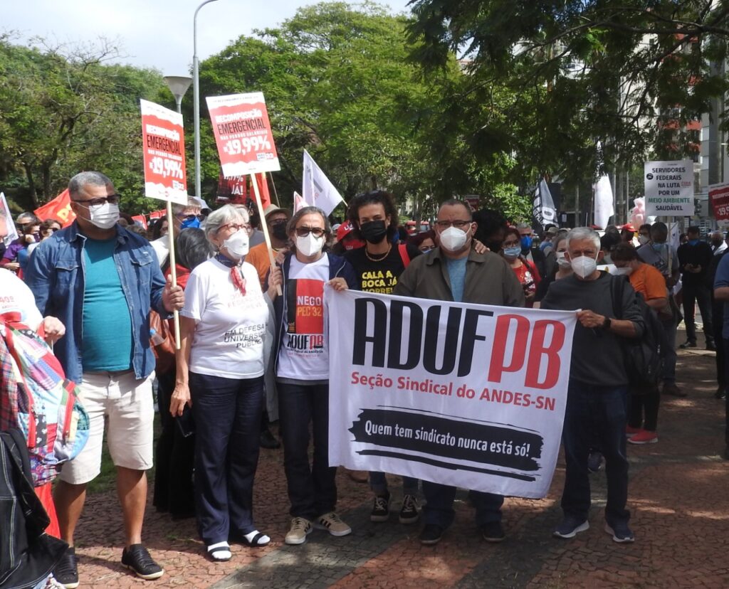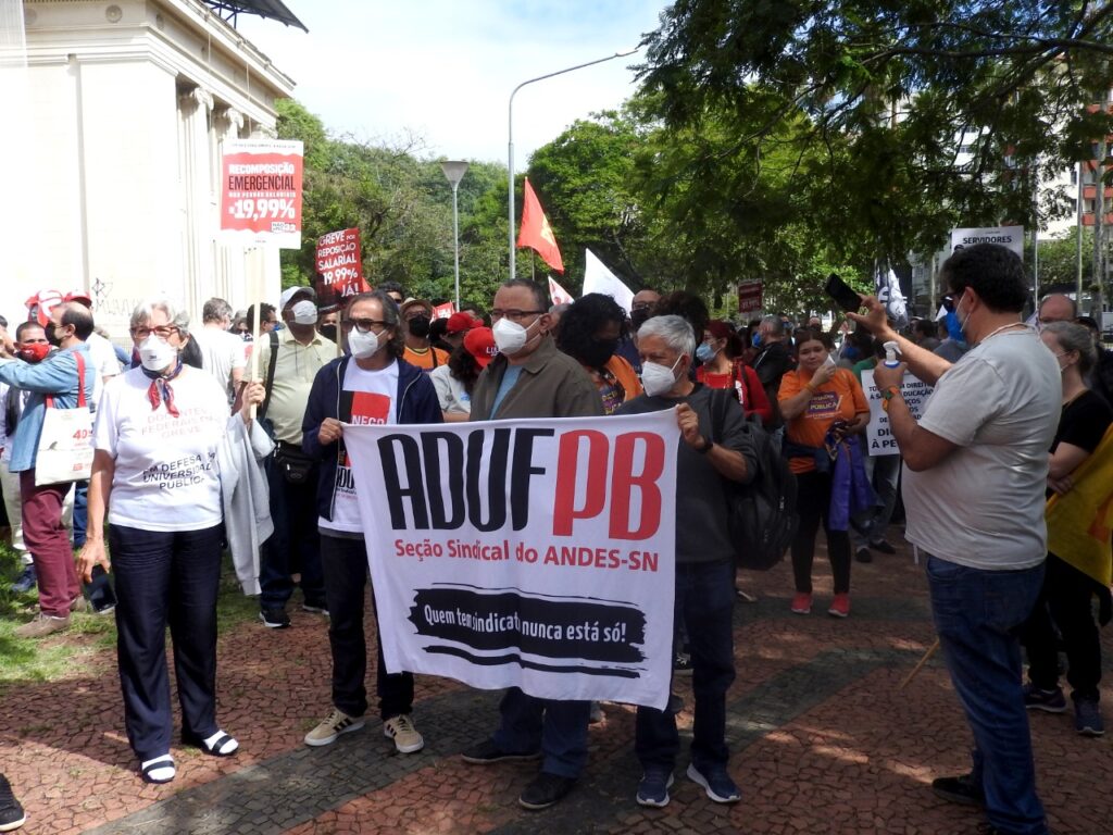 Milton Pinheiro, presidente do ANDES-SN em exercício, destacou a importância da luta das servidoras e servidores públicos do estado, e também da mobilização do funcionalismo federal, por reposição salarial, em defesa da universidade pública e da Ciência e contra o obscurantismo e negacionismo que têm atacado, segundo ele, o povo brasileiro.