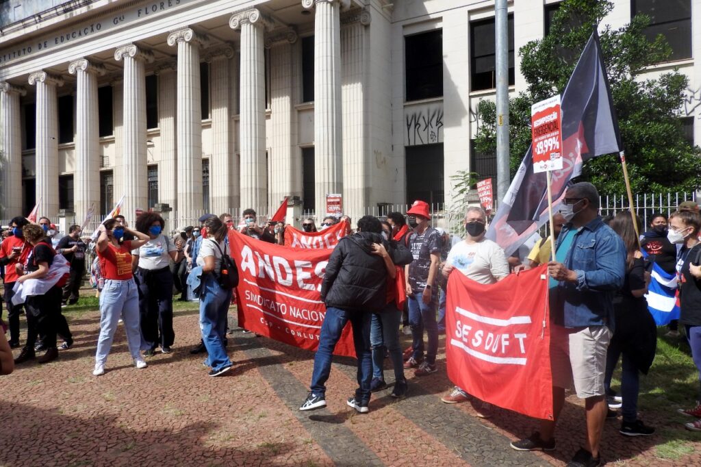 Para Cesar Beras, 1º secretário da Regional Rio Grande do Sul do ANDES-SN, o governo Bolsonaro representa o machismo, o racismo e o negacionismo. “A nossa pauta é por reposição salarial e ela encarna a necessidade de termos outro projeto que não é do Capital, do mercado, mas que afirma a nossa condição humana”, pontuou.