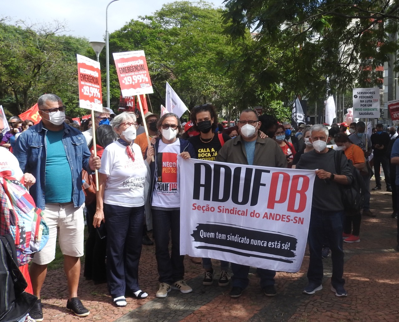 A delegação da ADUFPB, formada por 14 docentes (11 delegados e delegadas e três observadores), participou do ato.