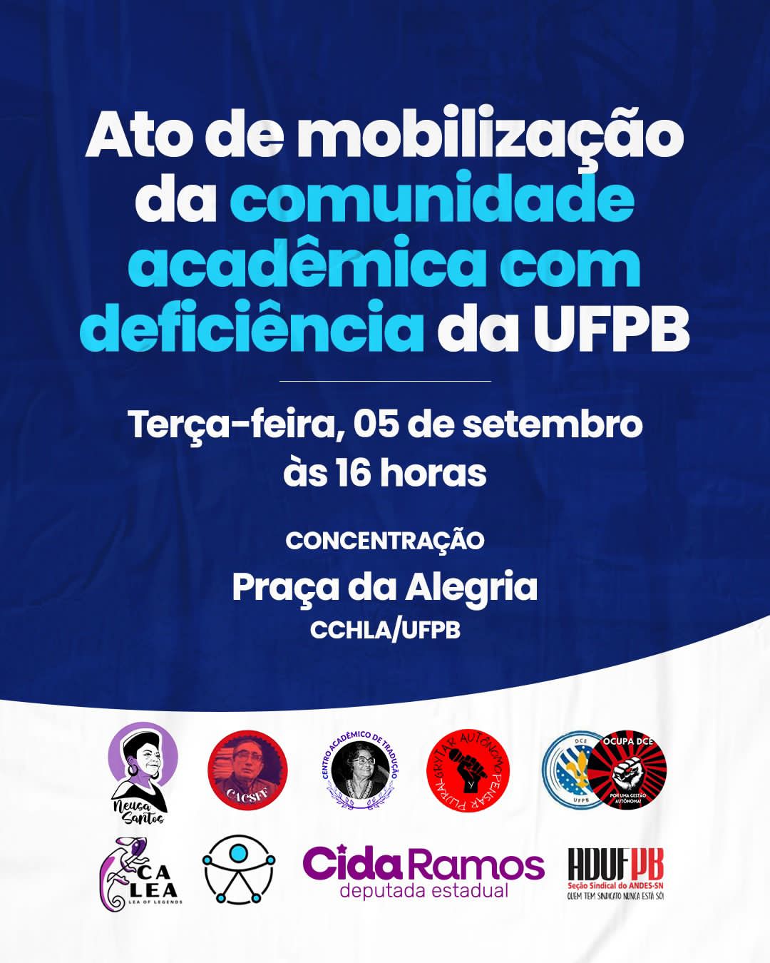 A ADUFPB participa nesta terça-feira (5/9) da mobilização de luta da comunidade acadêmica com deficiência da UFPB.