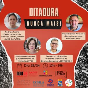 18h – Debate com o eixo temático “História e memória da ditadura militar na UFPB” e participação de: