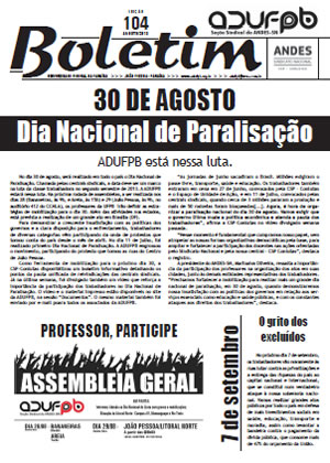 Boletim ADUFPB | nº 104 | Agosto de 2013