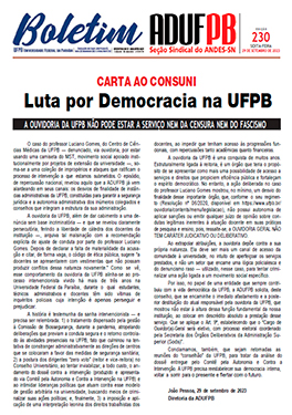 Boletim ADUFPB | nº 238 | 19 JULHO 2024 – Nota de solidariedade e apoio da Diretoria da ADUFPB