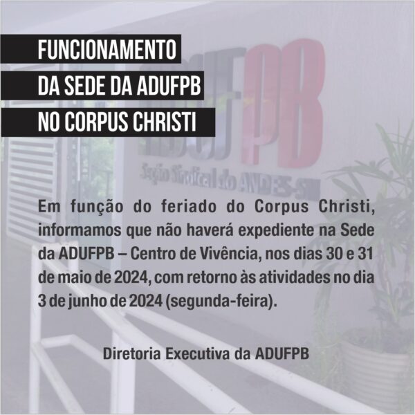 A ADUFPB realiza, na próxima quarta-feira (27), um evento voltado à discussão sobre os direitos e deveres da população idosa. Com o tema “Proteção do Idoso: Responsabilidades Interpessoais e Dignidade da Pessoa Humana”, o encontro ocorrerá das 9h às 11h30, na Sala de Leitura da sede da ADUFPB, localizada no Centro de Vivência do campus…