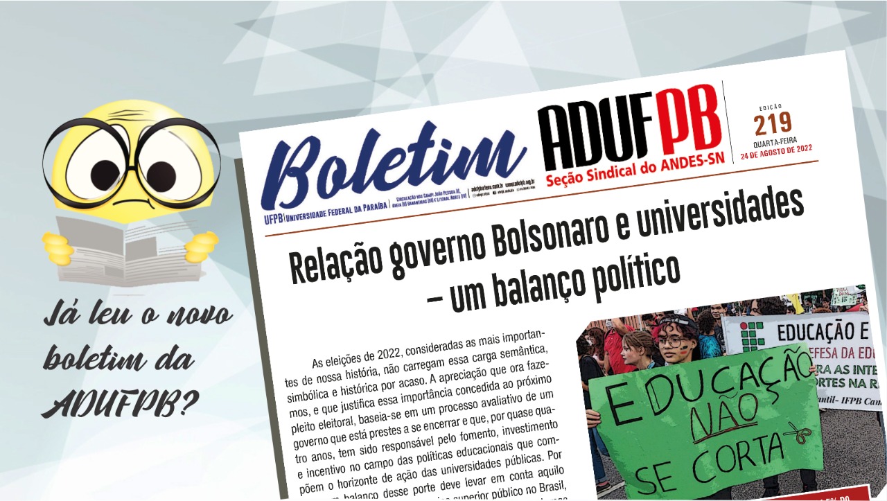 “Em grande medida, a discussão que propomos sobre as eleições de 2022 está pautada no balanço que hoje fazemos deste governo e na capacidade crítica inerente ao trabalho e à formação docente no tocante a essa política em curso”, avalia o novo Boletim ADUFPB.