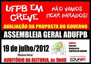 Os professores da UFPB realizam assembleia na próxima quinta-feira (19/7). O tema central da discussão será a proposta de negociação apresentada pelo Governo Federal na última sexta-feira (13/7).