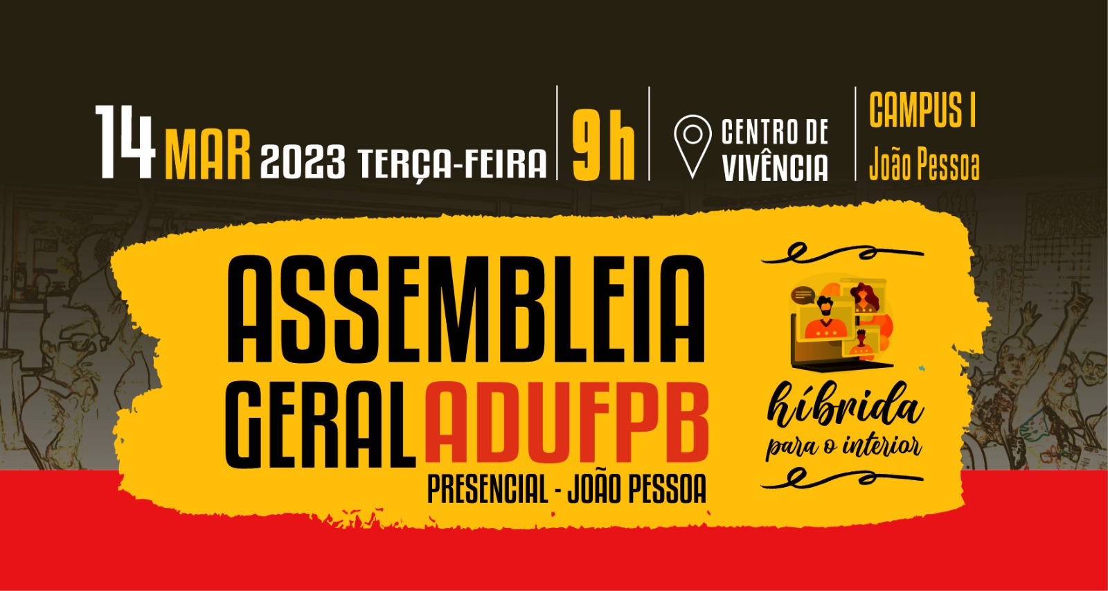 A ADUFPB realiza, nesta terça-feira (14), uma assembleia geral para discutir a proposta de reajuste apresentada à categoria docente pelo governo federal. O encontro acontece a partir das 9h, no Centro de Vivência do campus I, João Pessoa. Docentes dos campi de Areia e Bananeiras assistirão à assembleia em formato virtual. Assuntos jurídicos relativos às progressões funcionais também estão em pauta.