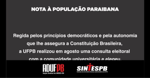 UFPB contra a intervenção: comunidade universitária realiza protesto nesta 4ª feira (18)