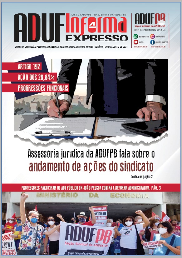 A nova edição do AdufInforma Expresso já está circulando e traz uma importante convocação para os(as) docentes. Na próxima segunda-feira, dia 16, às 14h, a ADUFPB realiza nova assembleia virtual para decidir sobre a Greve Geral do Serviço Público contra a PEC 32. Na ocasião, também estará presente o advogado Paulo Guedes, assessor jurídico do…