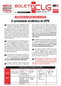 AGENDA SEMANAL DAS ATIVIDADES DO COMANDO DE GREVE DOCENTE DA UFPB (10 a 14 de junho)