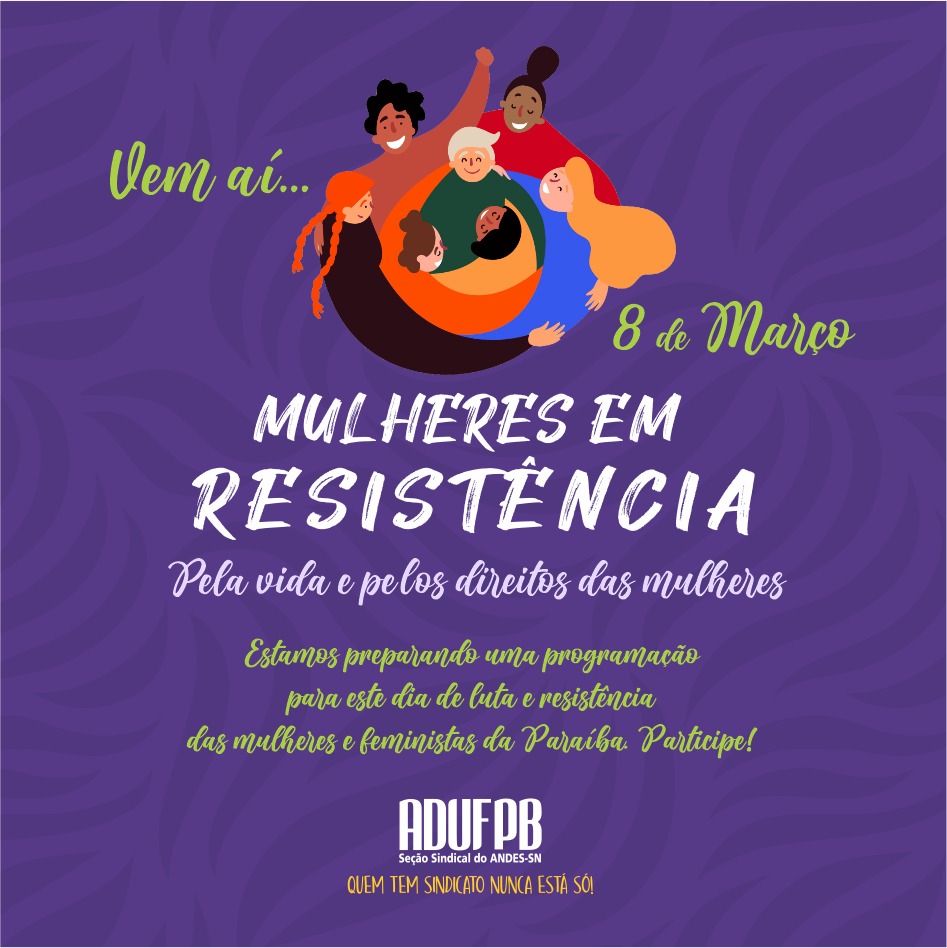 A ADUFPB, por meio do Comitê Mulheres em Resistência, convida para uma série de atividades em alusão ao Dia Internacional da Mulher. O objetivo é promover ações de luta e reflexões que fortaleçam o movimento das mulheres por uma sociedade mais igualitária.