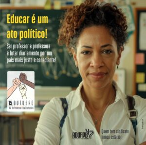 Neste 15 de outubro, a ADUFPB homenageia todas as professoras e todos os professores, que, diariamente, contribuem para a formação de gerações, a produção de conhecimento e o fortalecimento da educação pública. Em um contexto de profundas transformações sociais, a data também é um convite à reflexão sobre o papel da docência e a importância da organização coletiva.