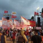 Um grande ato político-cultural com o objetivo de conscientizar a população sobre pautas urgentes para todas as categorias de trabalhadores e trabalhadoras foi realizado na tarde e noite de domingo (30/4) no Busto de Tamandaré, na orla de João Pessoa. Os manifestantes pediam a valorização do Salário Mínimo e do emprego, a redução dos juros e o combate ao fascismo.