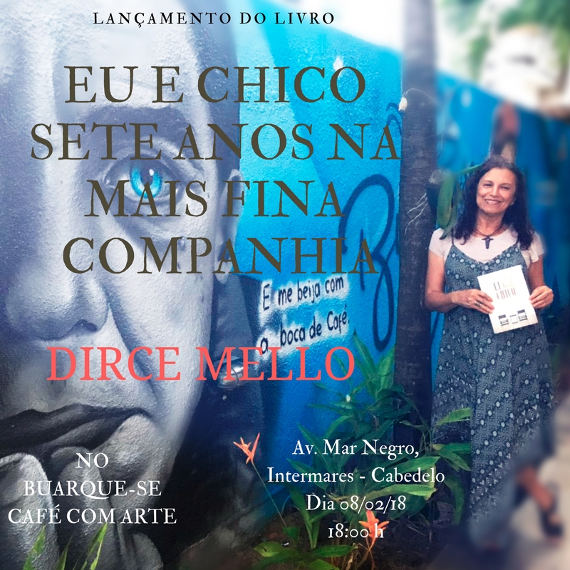 Dirce Mello convida para o lançamento do seu livro, “Eu e Chico. Sete Anos na Mais Fina Companhia”, que acontece na próxima quinta-feira 08/02 às 18h, no Buarque-se Café com Arte, que fica na Avenida Mar Negro, 267, Intermares, Cabedelo.
