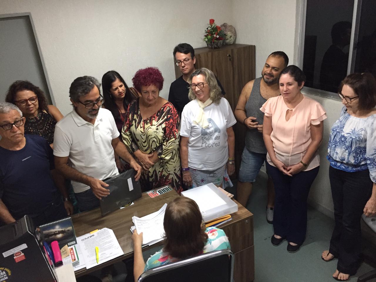 Eles fizeram a leitura dos nomes que compõem os dois grupos concorrentes ao pleito de 2019. Em seguida, foram entregues aos representantes de ambas as chapas cópias das inscrições e uma lista com os nomes de todos os filiados da entidade, organizada por ordem alfabética.