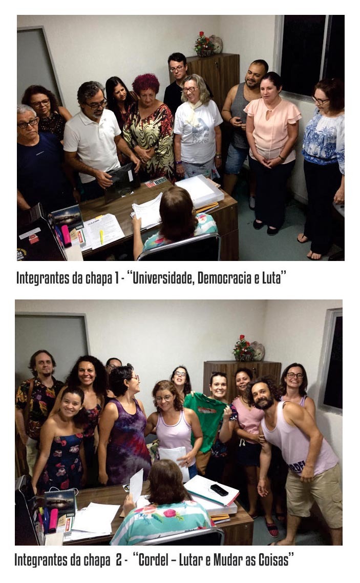 A Secretaria Executiva da ADUFPB recebeu nesta segunda-feira (28/10), na sede do sindicato, no Centro de Vivência do campus I da UFPB, as inscrições das chapas “Universidade, Democracia e Luta” (chapa 1) e “Cordel – Lutar e Mudar as Coisas” (chapa 2), que irão concorrer às eleições da entidade para o biênio 2019-2021.