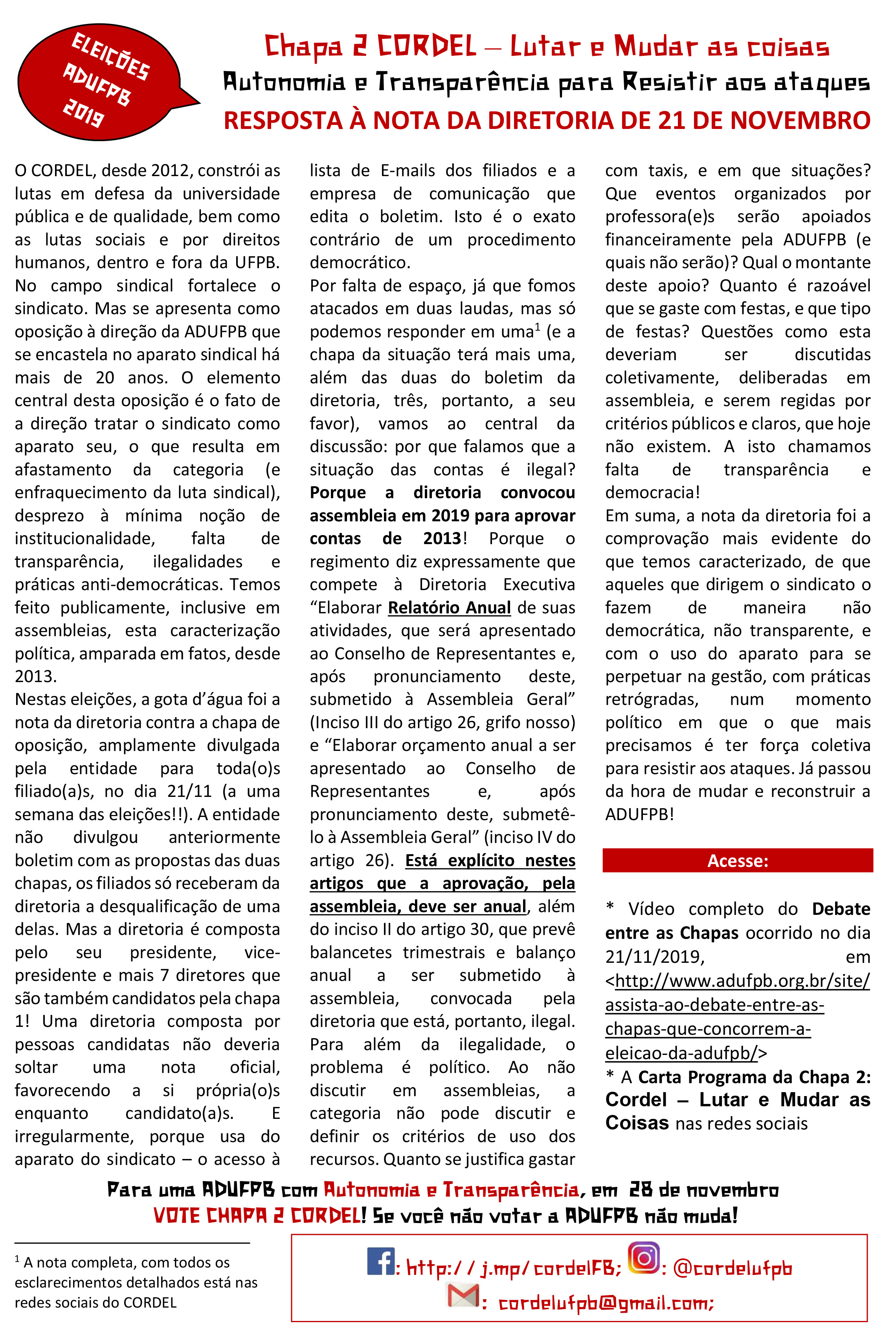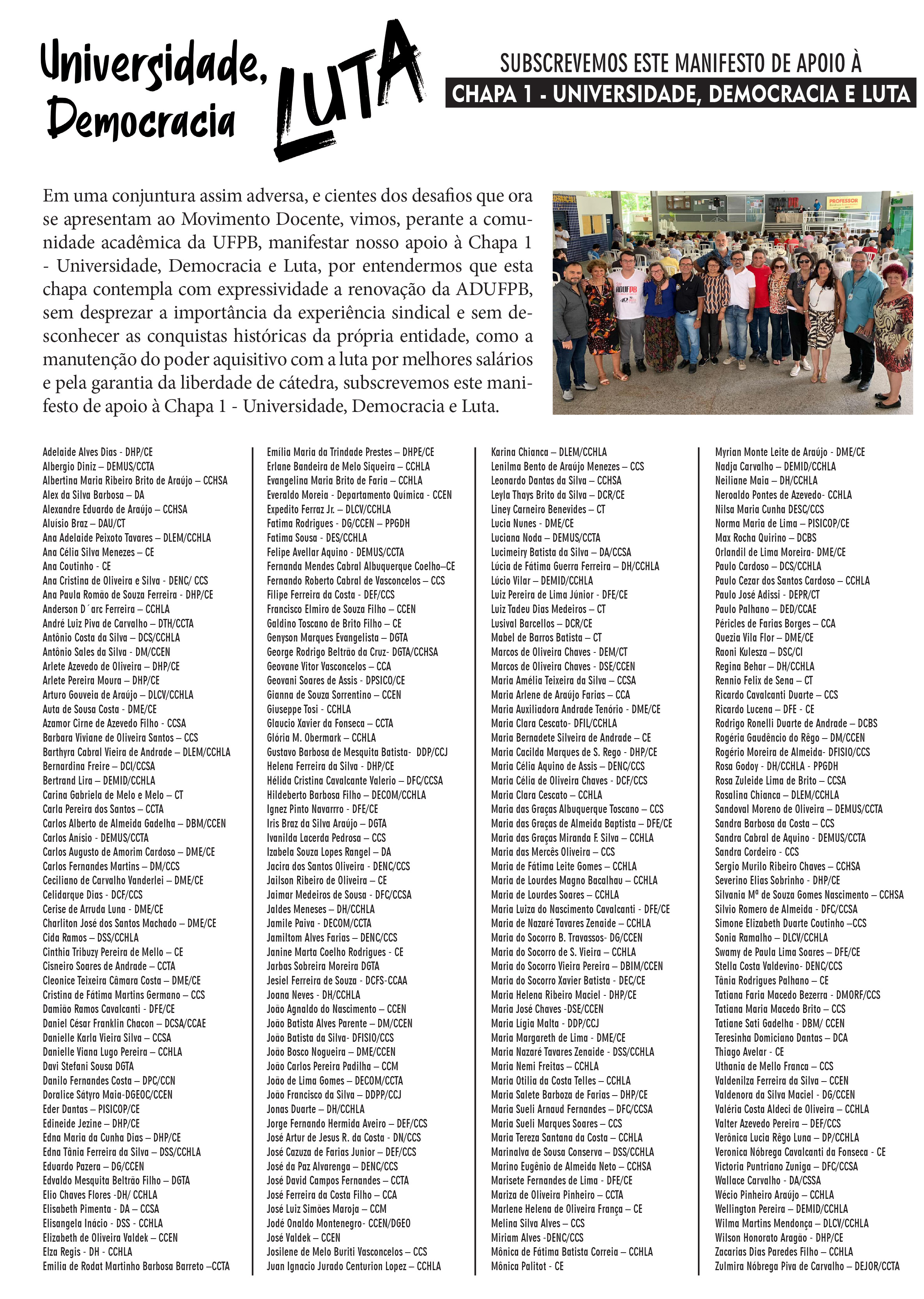 26 de novembro de 2019 Compartilhar Compartilhar isto FacebookCompartilhar isto Facebook Share on XCompartilhar isto X Compartilhar isto WhatsAppCompartilhar isto WhatsApp Navegação de post:AnteriorPost anterior:ADUFPB promove roda de conversa sobre racismo nesta quarta-feira (27)PróximoPróximo post:Eleições ADUFPB: Veja os locais de votação