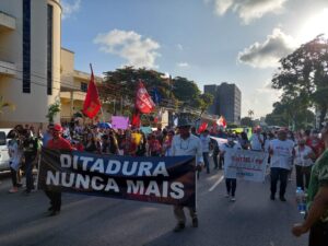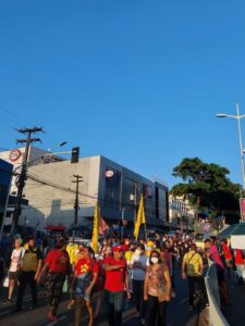 Sol forte, tráfego intenso, palavras de ordem e batucada. Nesse cenário, montado em frente ao Liceu Paraibano, Centro de João Pessoa, trabalhadores e estudantes bradaram por eleições livres e contra o Governo Bolsonaro, durante o Ato pela Democracia de 11 de agosto. Por volta das 16h, o grupo saiu em direção à Assembleia Legislativa do Estado, onde se encerrou, pouco depois das 18h.